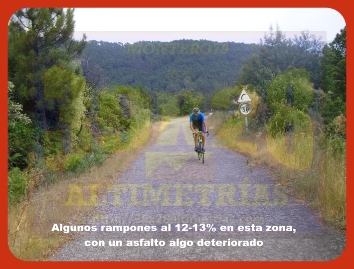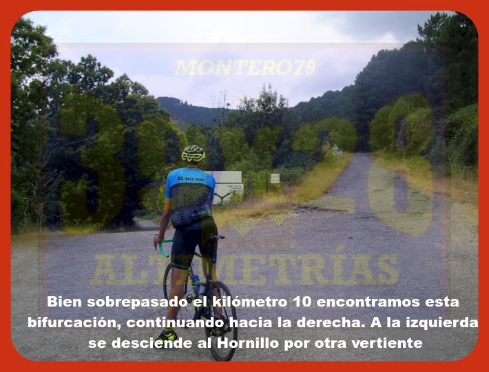 En Arenas de San Pedro, localidad al sur de la sierra de Gredos que fue salida de etapa en la Vuelta a España de 2019, arrancaremos la medición en el cruce que nos indica el Hornillo y El Arenal, dejando a la izquierda la carretera que sube a Nogal del Barranco. La primera mitad transcurre por la AV-P-711, una carretera en buen estado, más bien ancha, sin arcén, sombría por momentos, y con tendencia ascendente casi siempre, y alguna que otra rampa de hasta un 10% en torno al kilómetro 3. Alcanzamos la localidad de El Hornillo ya en el quinto kilómetro y nos encontramos, a la entrada prácticamente, un desvío hacia Guisando (que también se puede utilizar para ascender al refugio de Mingo Fernando). Habrá que atravesar toda la localidad (y salir de ella) para tomar, ahora sí, y ya en el kilómetro 6 de ascenso, el desvío al refugio de Mingo Fernando. A partir de ahí la carretera se estrecha algo más y es algo más "botosa", por momentos, con rampones y descansillos, y varios "cruces" (unos cuantos) con carreteras forestales y alguna que otra pista (en el gráfico he indicado dos, además de otro más en el reportaje gráfico). En el kilómetro 10,5 encontraremos la última bifurcación, con la carretera que sube desde El Hornillo y que comentaba más arriba (con bastante más pendiente). Desde ahí algo más de kilómetro y medio bellísimo y con varios rampones hasta culminar en una pequeña explanada a más de 1100 metros de altitud y tras 12,1 kilómetros de subida.