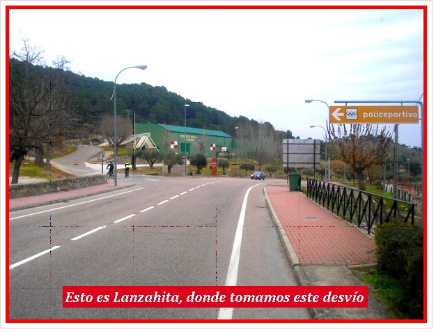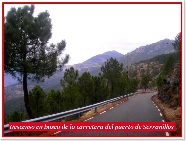 descendiendo 2,5 kilómetros, hasta la carretera que sube a Serranillos