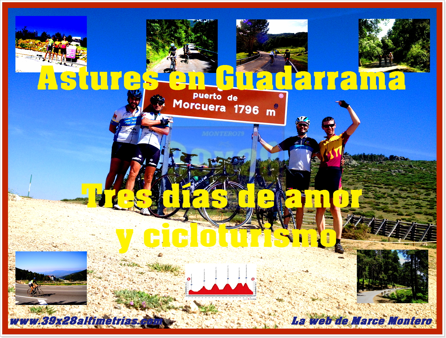 Y ese es el lema: Tres días de amor y cicloturismo. Amor a los puertos, amor a ese tiempo impagable pedaleando con grandes amigos una vez más, amor a esos pocos y cortos momentos en los que volvemos a coincidir. Dicen que es la vida, que a unos los lleva aquí y a otros allá, pero también debe ser la vida añorar ahora mismo, cuando la distancia ha vuelto a crecer, estos momentos juntos, esos momentos en la cima de los puertos, mirando, como si fuéramos los reyes de todo lo que vemos abajo. Eso debe ser la vida, saborear cada uno de esos momentos y no lamentarte por no haber sabido valorarlo cuando lo tuviste en la mano, a tu lado,...