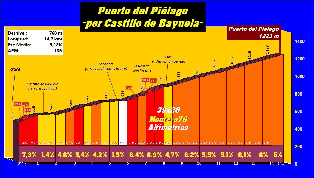 | Talavera de la Reina-Piornal | DESNIVEL | APM | Longitud | Pte.Media | <4% | 4-7% | 7-10% | >10% | CATEGORÍA |