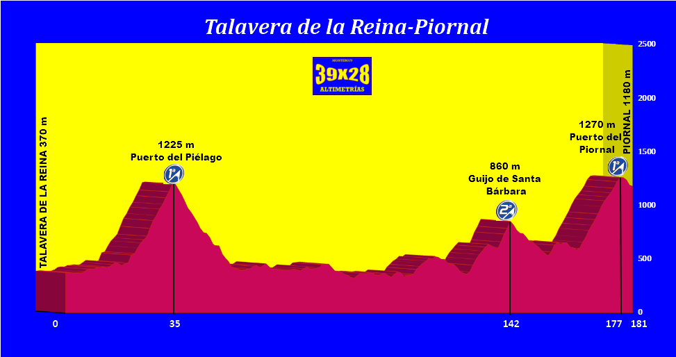 La etapa tomaría dirección norte para afrontar el puerto del Piélago, el cual permanece inédito en la Vuelta a España, a pesar de su cercanía a Talavera de la Reina, a donde la carrera española ya ha llegado en varias ocasiones...
