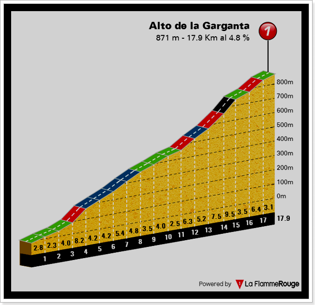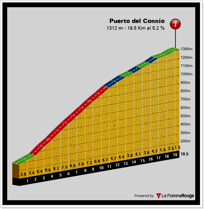 Continuamos con la única ascensión que sí entró en la Vuelta a España, de las cinco propuestas, el Connio, un larguísimo puerto que se afronta por su vertiente de Ibias...