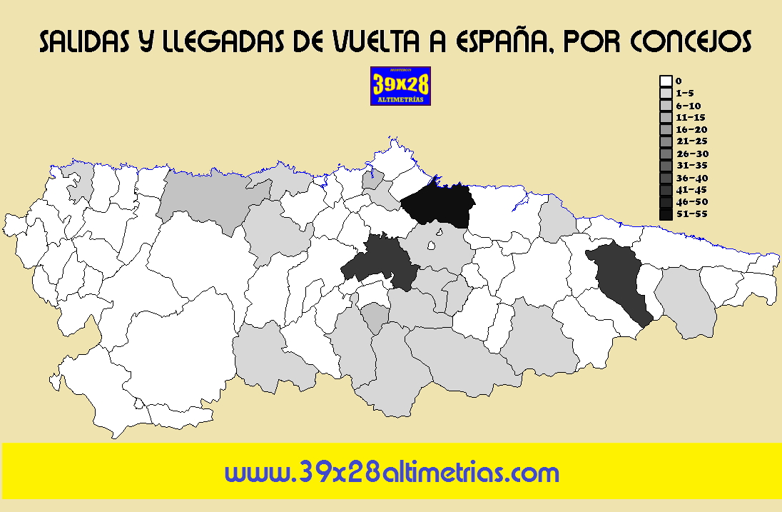 El mapa de salidas y llegadas por concejos asturianos no deja lugar a