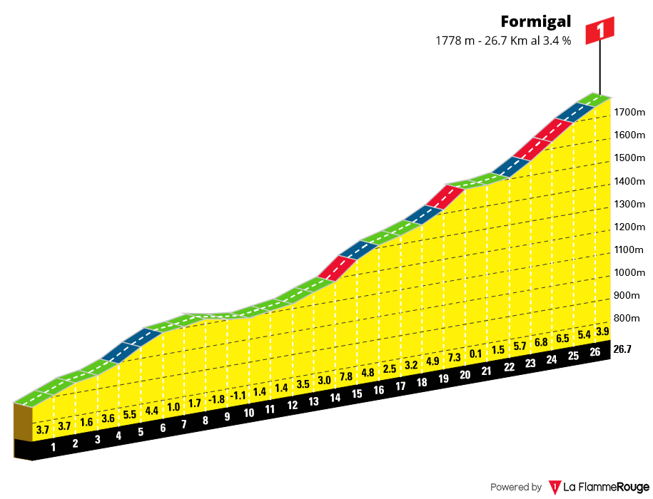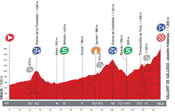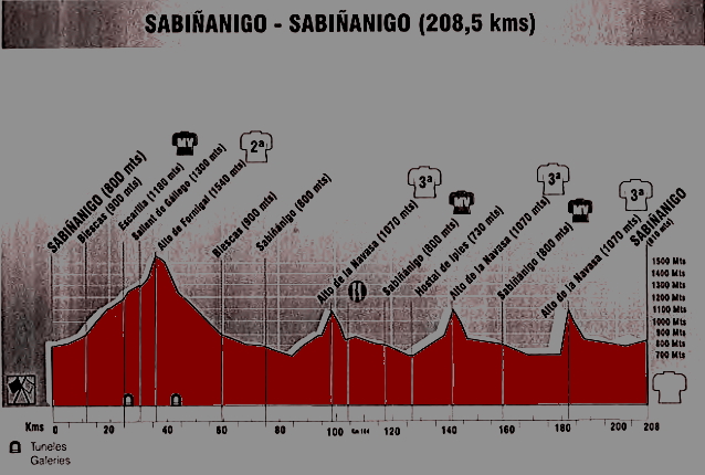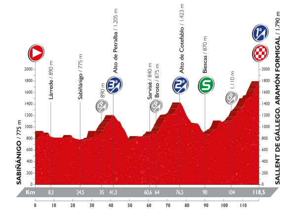 2016, al que se dan dos vueltas, y, seguidamente, Petralba, Cotefablo y la larga e irregular hasta Aramon-Formigal, a 1790 metros de altitud. La etapa es así: