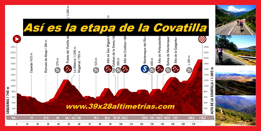 La etapa de este año 2020 tendrá 178 kilómetros y vendrá cargada desde la salida en Sequeros con otros cinco puertos, acumulando un desnivel superior a los 4000 metros (la segunda de más desnivel de toda la Vuelta tras la de Farrapona).