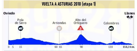 ETAPA 1: La ronda asturiana de 2010 cuenta con una primera etapa destinada más a los sprinters, en una jornada con una sóla dificultad montañosa, el alto de Ortiguero.