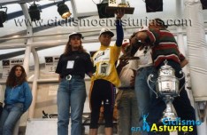 Coque Uría en el podium de Mieres, último vencedor de la Vuelta a los Valles Mineros